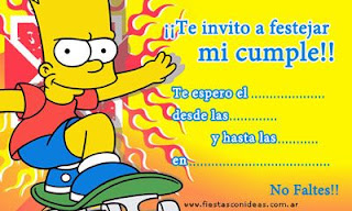 A continuación , os dejamos con las invitaciones para fiesta de los simpsons, con diferentes personajes de la seria, colores , estilos y formas, esperamos que os gusten y os sirvan para vuestro evento. Para descargar, sólo tendréis que dar clic derecho sobre la imagen elegida, guardar imagen, posteriormente imprimir y escribir vuestro mensaje.